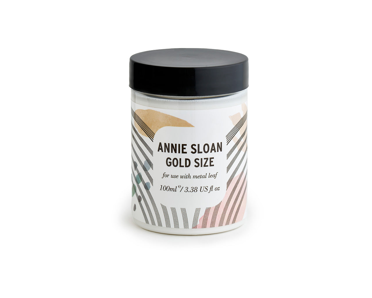 Annie Sloan Gold Size er en vannbasert limtype som har den fordelen at den forblir klebrig etter tørking.