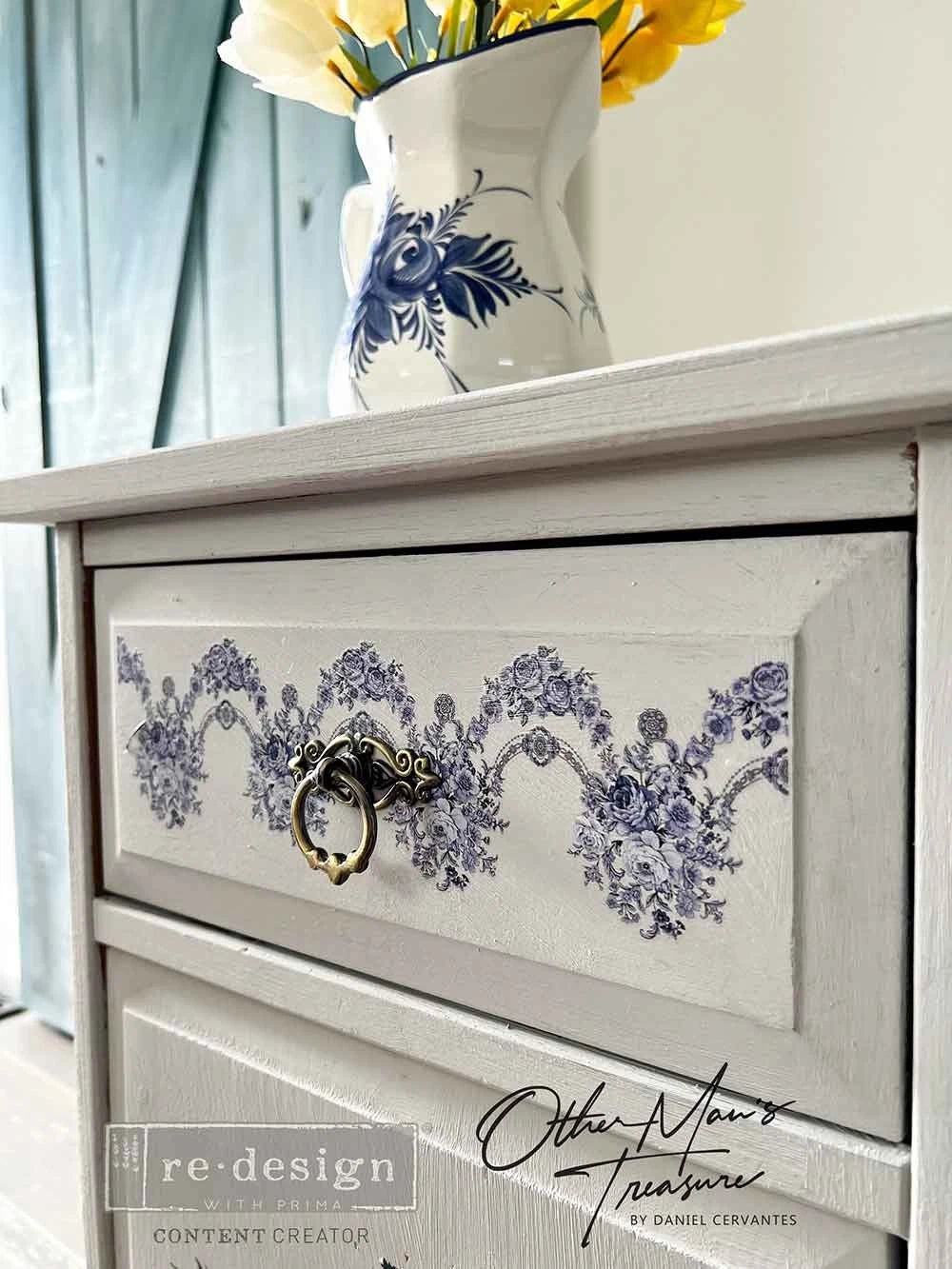 Azure Florals Ii har et elegant blomstermotiv i kjølige, blå toner inspirert av klassisk porselen og botaniske illustrasjoner. De delikate blomstene og myke detaljene gir et rolig, tidløst uttrykk som passer perfekt til både møbler, keramikk og dekorative interiørprosjekter.