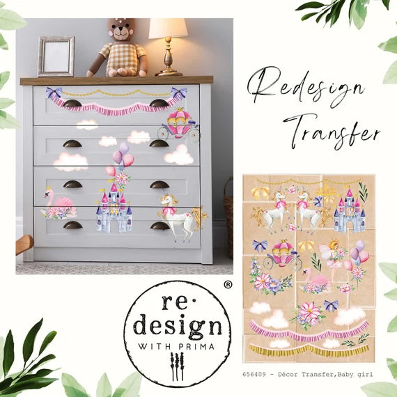 Skap et eventyrlig uttrykk med dette nydelige transferet fylt med ballonger, slott, hester og prinsessevogn. Perfekt til barnerom, møbler eller små prosjekter – dekorene kan enkelt klippes ut og brukes hver for seg for å tilføre et magisk preg 🏰