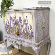 Et romantisk tredelt motiv med en blomstereng av lavendel, lett pyntet med sommerfugler og bier. Perfekt for å skape en stemning av fransk landsbyliv og sommerlige hager – enten på møbler, vegger eller andre dekorprosjekter.