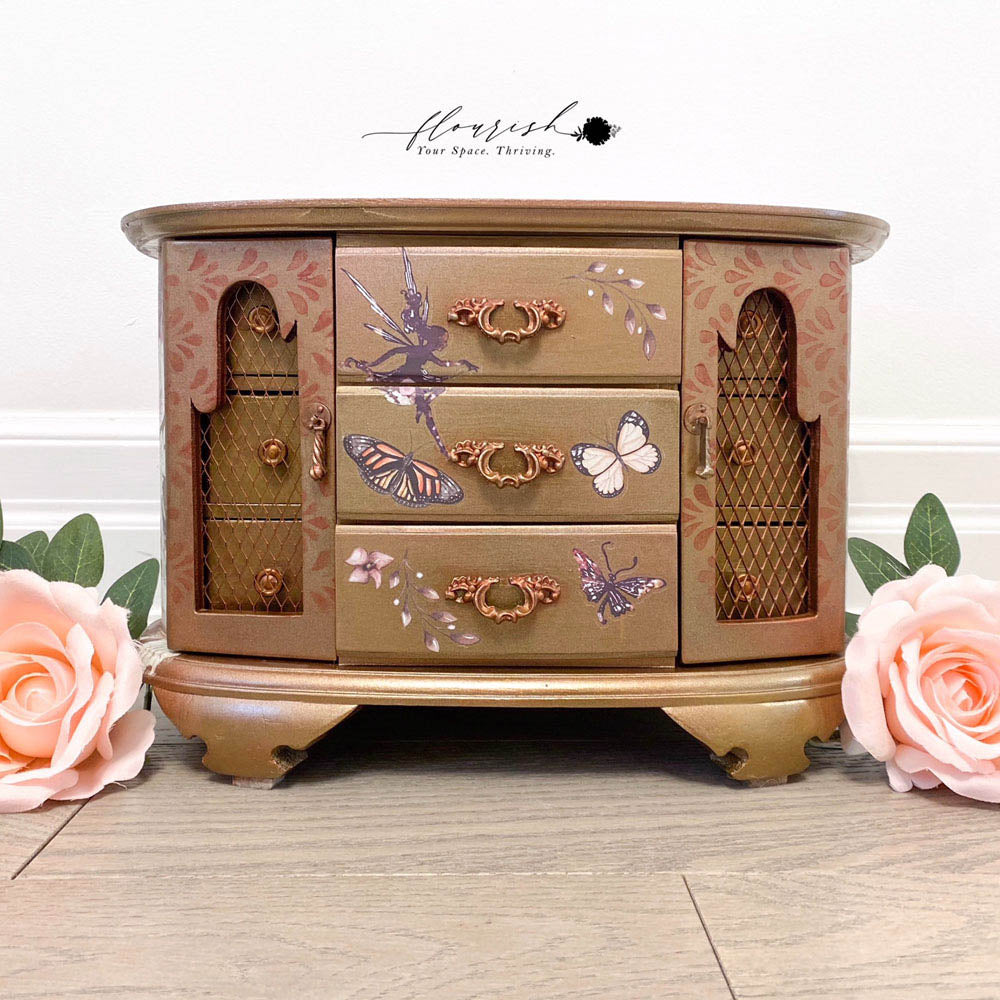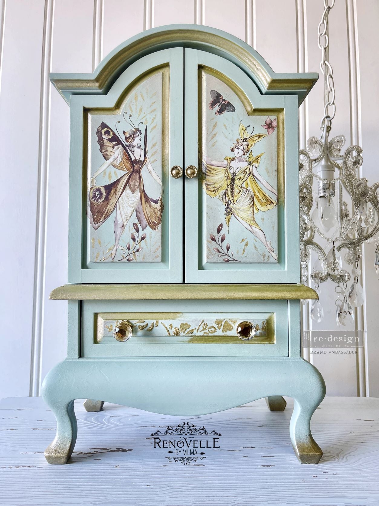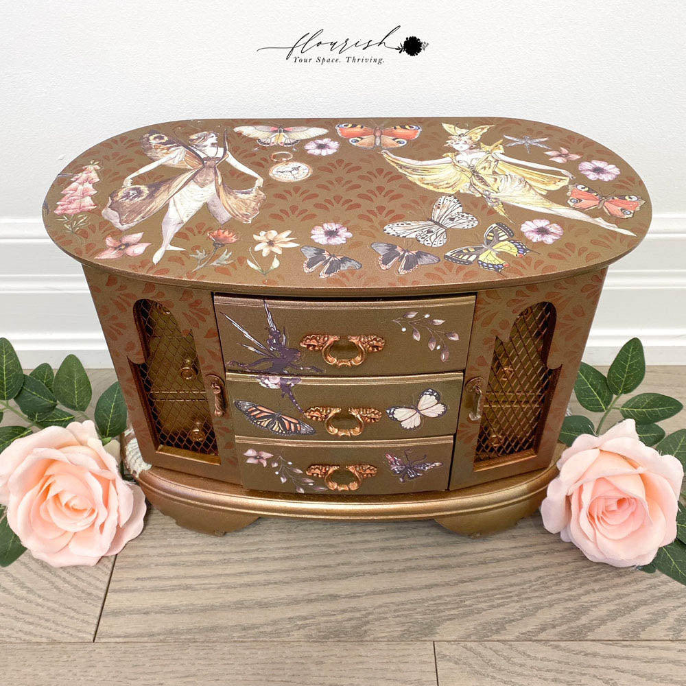 Magisk dekoroverføring med skogfeer, blomster og sommerfugler — et fortryllende motiv som gir møblene dine et hint av natur og eventyr 🧚🏻🦋