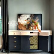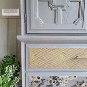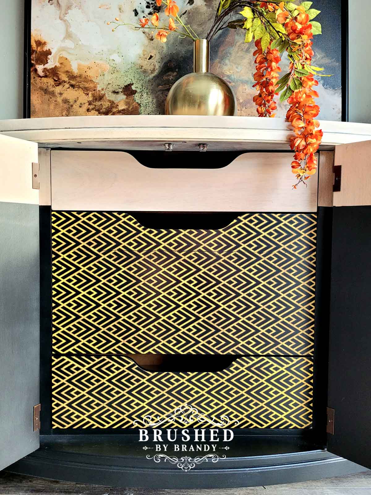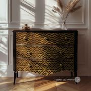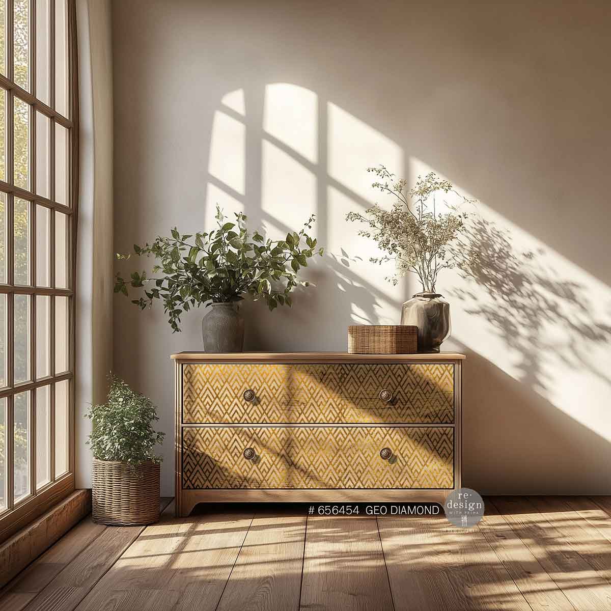 Stilig geometrisk mønster i gull, som passer på både malte flater og direkte på treverk.