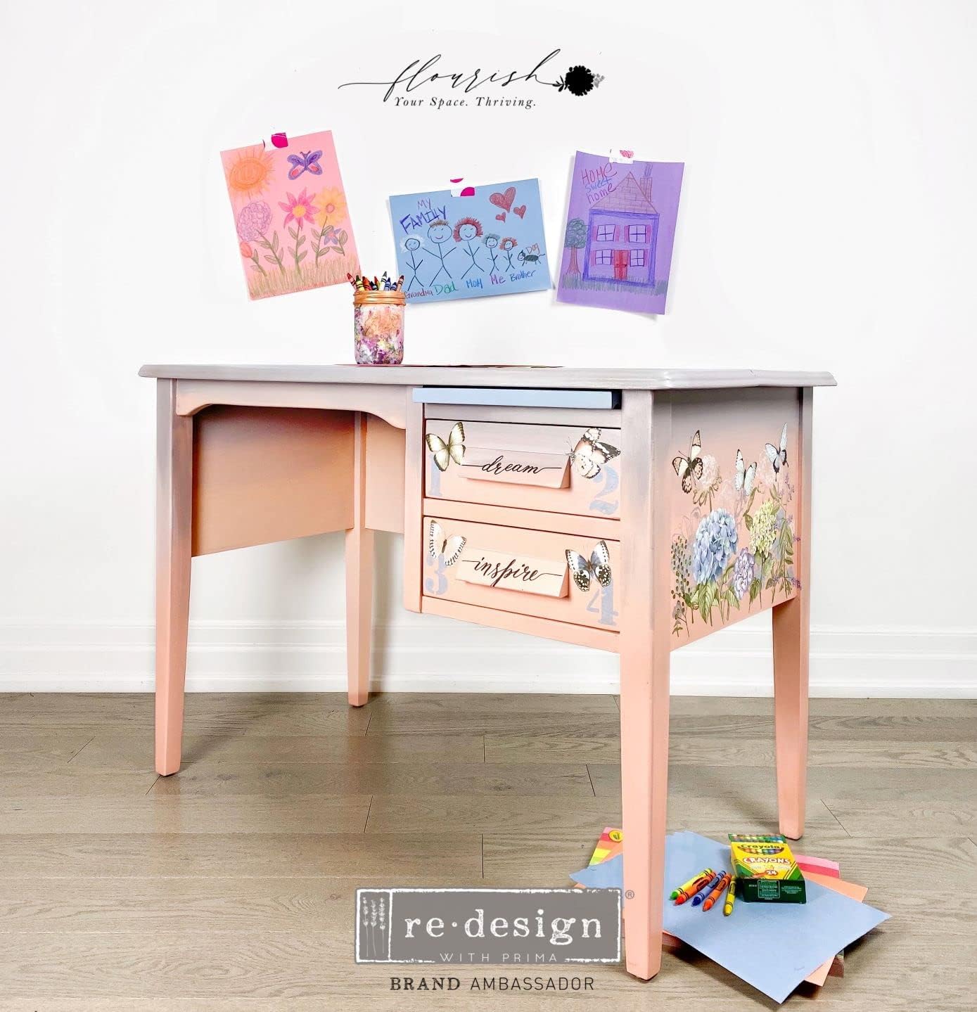 Décor Transfers® er utrolig enkle å bruke: Trekk av baksidepapiret, legg transferen på ønsket overflate, og gni den fast med det medfølgende verktøyet. Motivet kan klippes til og settes sammen på nytt for å passe dine behov – en fleksibel og tilpasningsdyktig løsning for alle dine dekorprosjekter. Forsegl med lakk eller klar voks 🤓