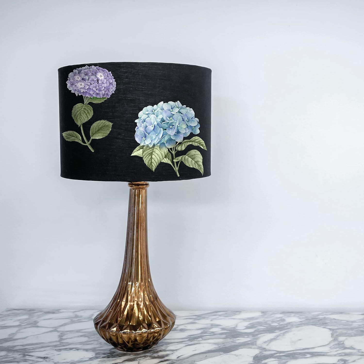 Bugnende hortensiablomster i duse toner med delikate blader og lavendelfargede småblomster. Perfekt for deg som elsker et romantisk, botanisk preg på møbler og interiør 🩵💜